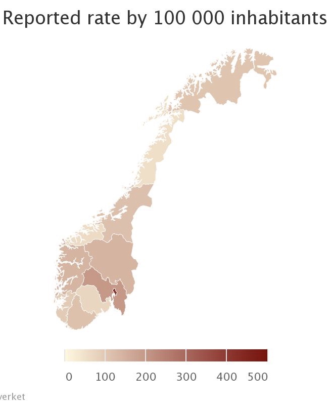 The regions in Norway were not hit with the same strength with the coronavirus. Some regions like Oslo and the regions around Oslo had much more cases than others. Specially the north in Norway was mostly spared. There are still some regions without even one corona cases. There might be many reasons for this unequal distribution of the coronavirus case. One of them is the fact, that in the north of Norway live significantly fewer people per square kilometre and the people in these regions had to be more afraid, because of a lack of medical supplies in a case of a pandemic. [45]