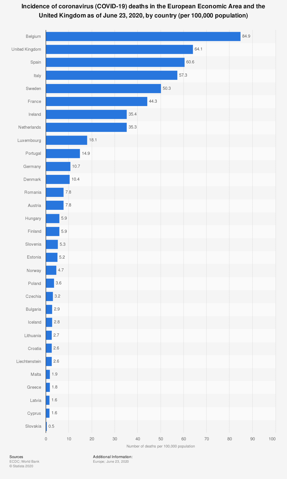 Figure 15 : Statista, URL : https://www.statista.com/statistics/1111779/coronavirus-death-rate-europe-by-country/ Accessed : 29.07.2020