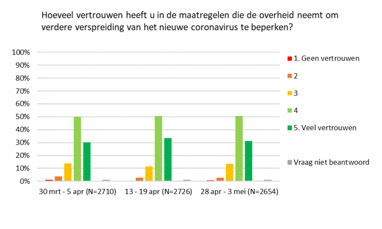 The trust of the Dutch population in their institutions and their ability to deal in an effective way with the ongoing crisis has been consistently on a remarkable high level. Even when crisis hit most hard in the end of March and throughout April Dutch citizens showed high support for their government and the measures that had been taken. All of this while the Dutch approach was heavily criticised by foreign actors. The reason behind the strong trust may be found in the way the Dutch government communicated with the general public and how they were adjusting the overall course several times taking citizens concerns into account and being responsive to them.