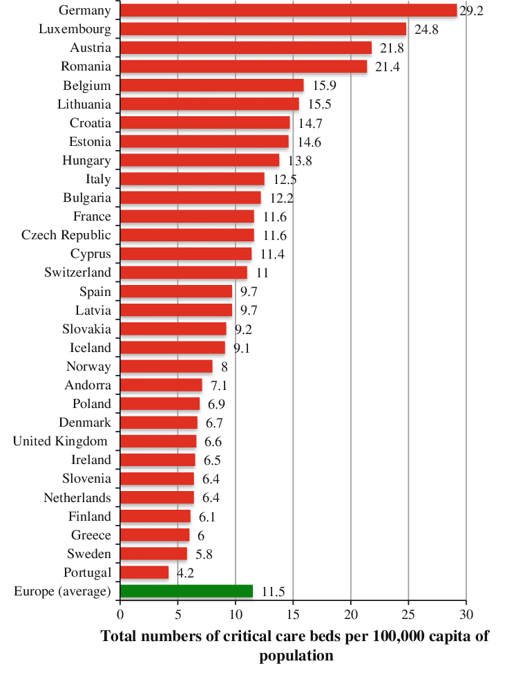 Figure 3: Rhodes, A., Ferdinande, P., Flaatten, H., Guidet, B., Metnitz, P. G., & Moreno, R. P. (2012). The variability of critical care bed numbers in Europe. Intensive Care Medicine, 38(10), 1647–1653. https://doi.org/10.1007/s00134-012-2627-8