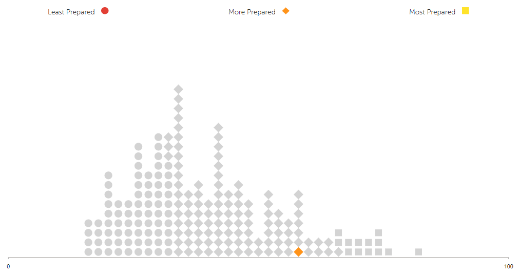 Chile overall is classified as a „More Prepared“ country and therefore located in the upper half of the spectre next to countries like Brazil, Austria, Argentina and Singapore.