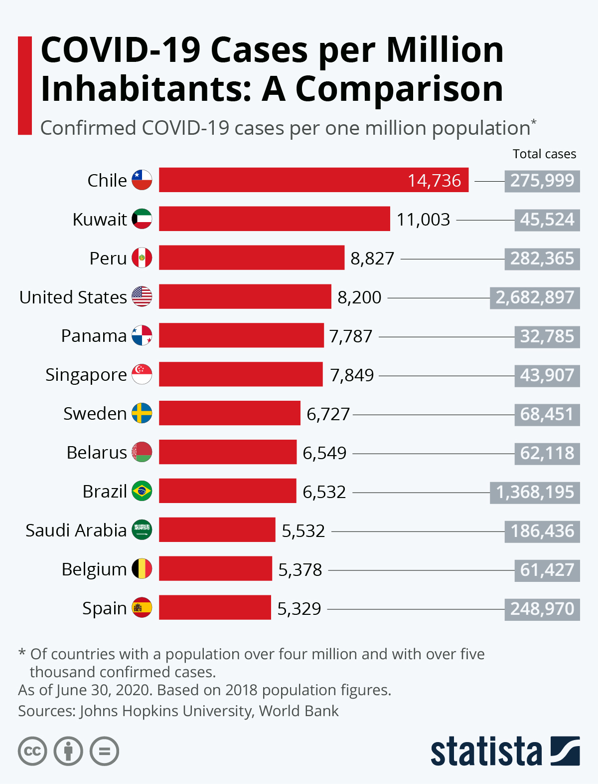 - Statista https://www.statista.com/chart/21176/covid-19-infection-density-in-countries-most-total-cases/07.20
