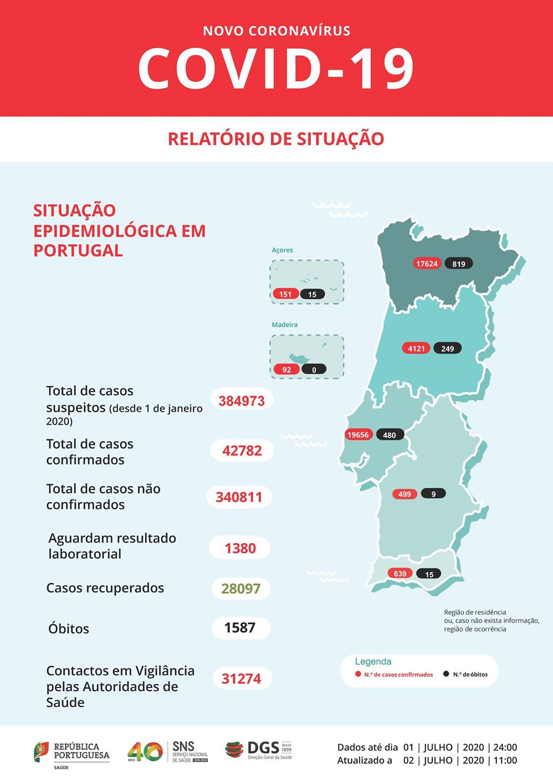 Hereunder I attach the most recent image by the 'DGS' (Directorate-General of Health) from July 13th, and we can see in comparison with the previous image from July 1st the number of cases as augmented at a very rapid rate.